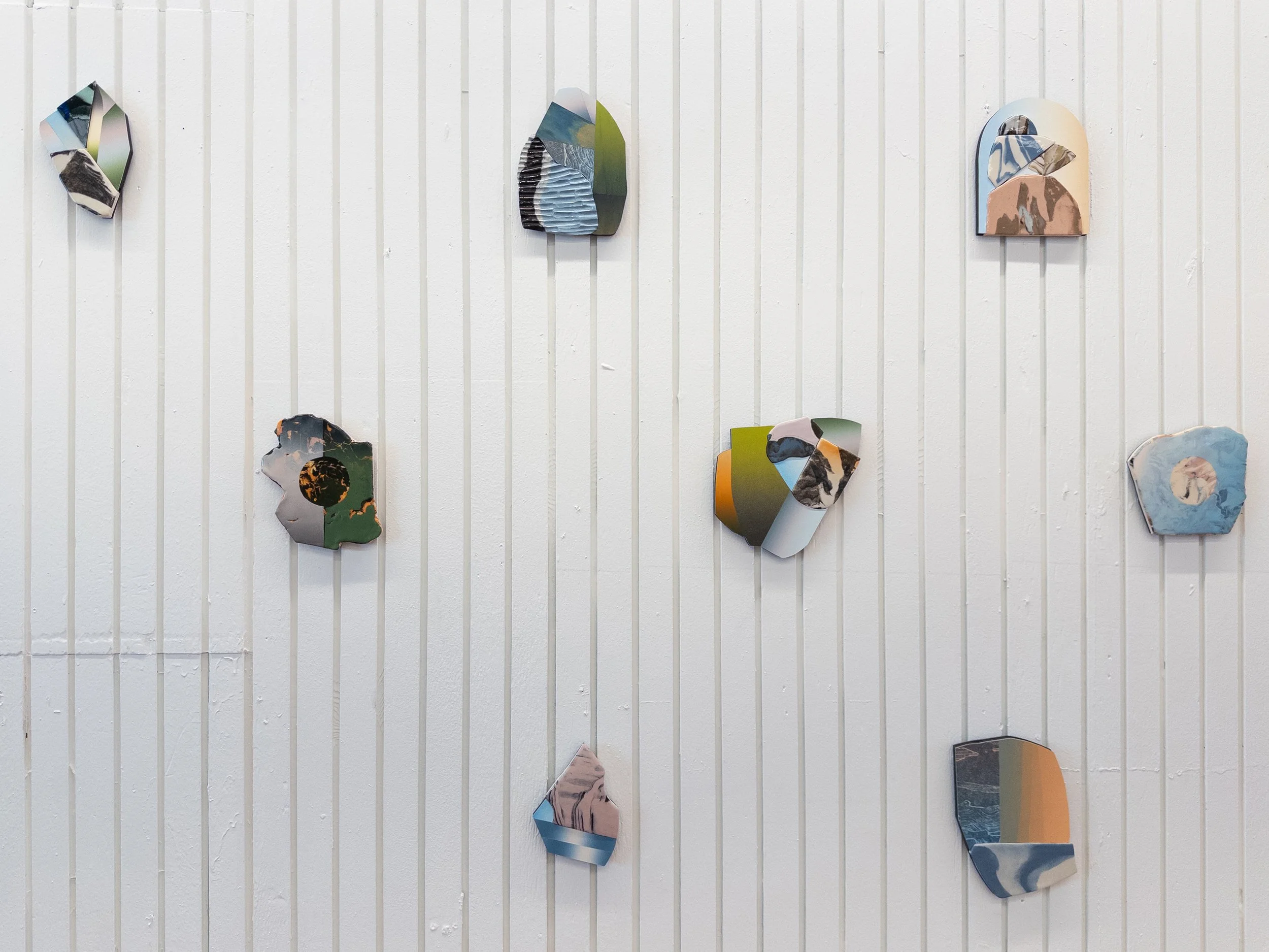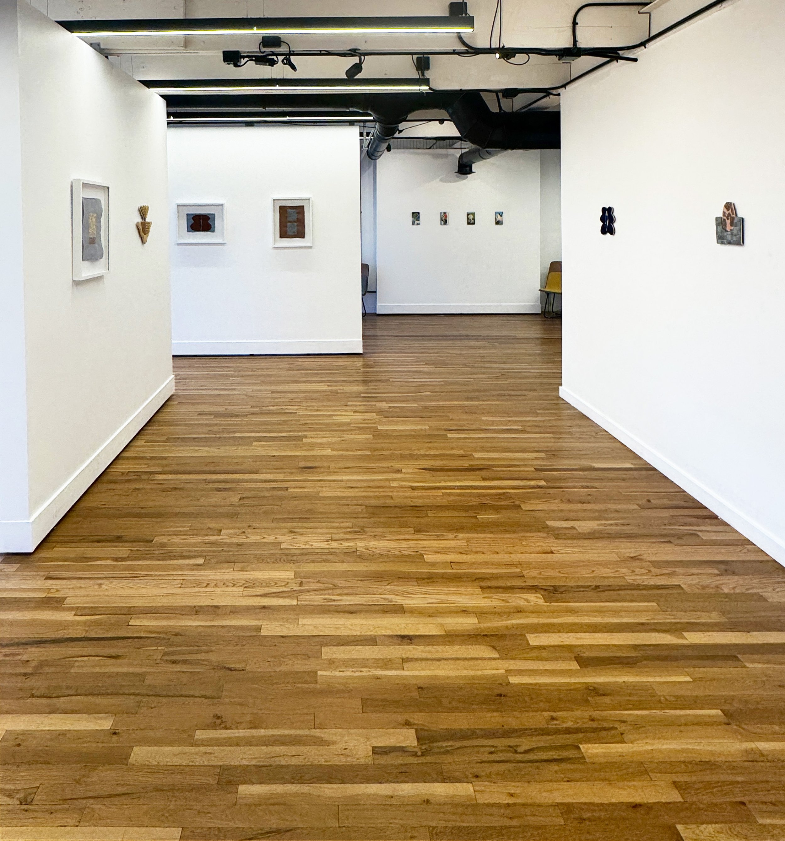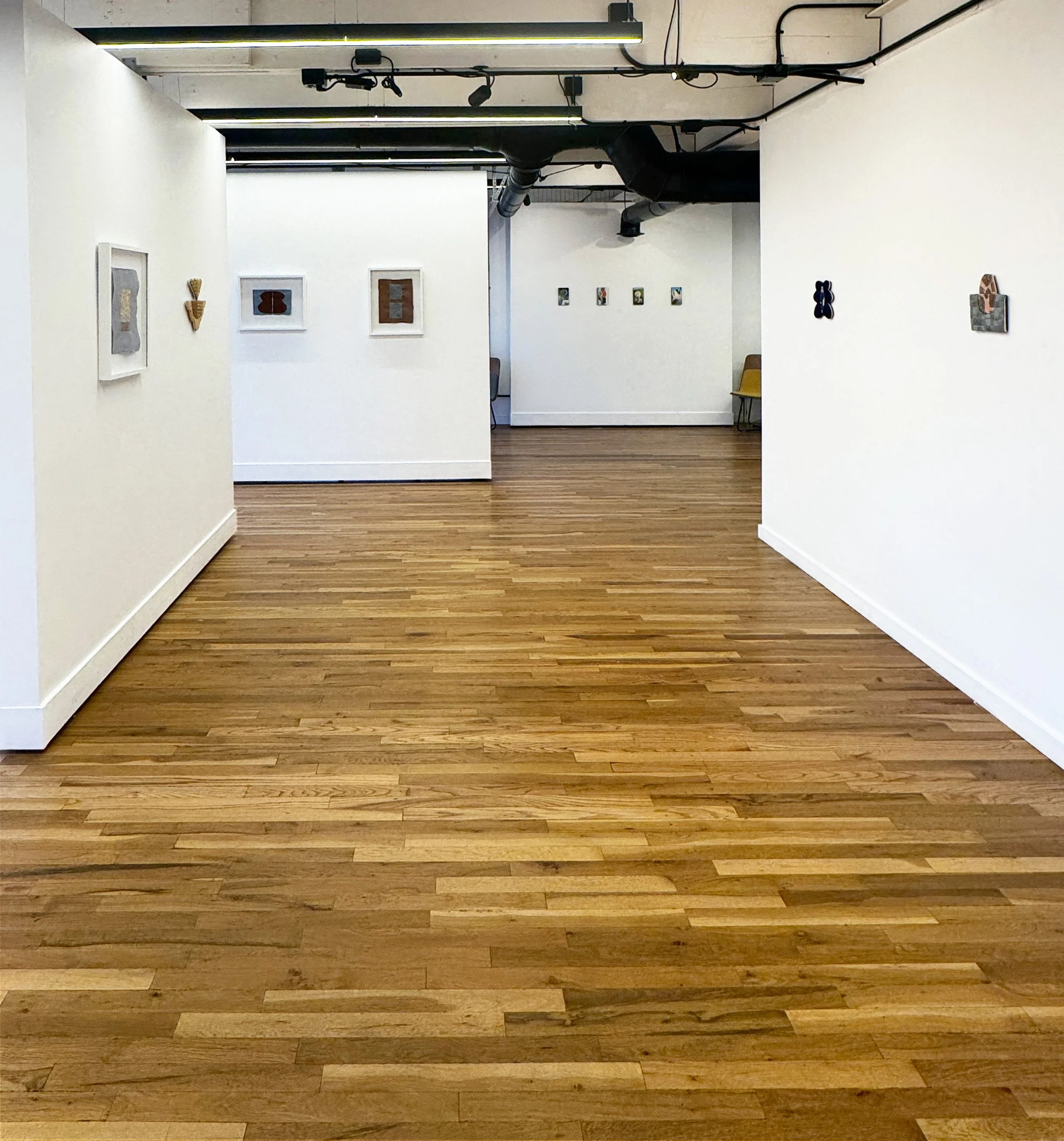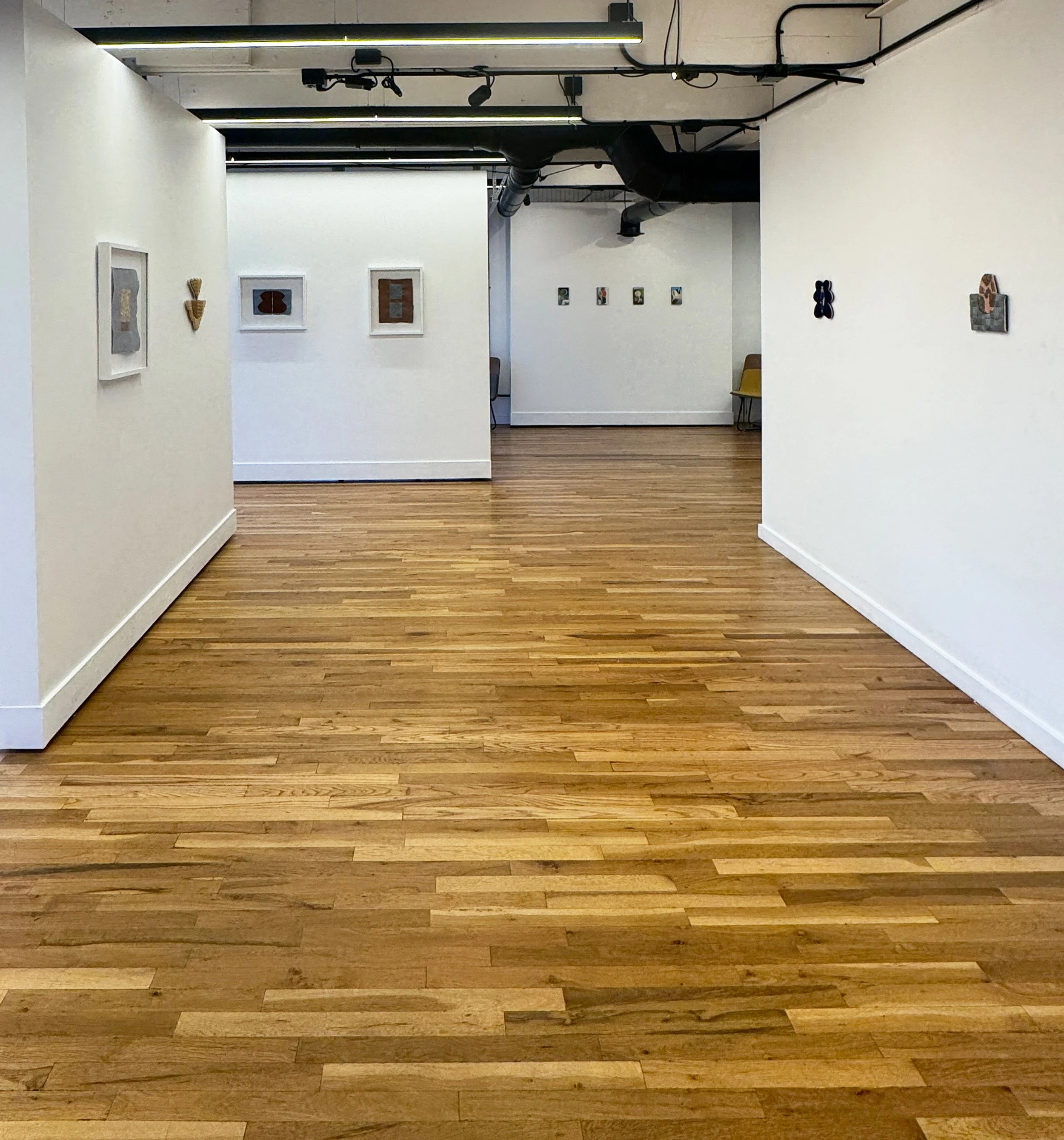 In Material Attention, Lucy Holtsnider and Nora Schuchat highlight their work with their hands; stitching thread through paper, printing and cutting gradients, arranging ceramic and wood, what happens when you stay with a material long enough to really understand it. Their pieces come from repetitive, meditative processes: layering, pairing, building up forms that shift between geometric precision and organic flow. Schuchat pairs strong thread with delicate paper to explore contradictions—tension and ease, perfection and mess—that mirror the emotional complexity of motherhood, stitching a single color of thread in different directions to make light itself into a physical material. Holtsnider starts outdoors observing color and light, then translates those experiences into monotype prints on a letterpress that she methodically cuts and combines with ceramic and wood, pushing back against the speed of digital culture through hands-on trial and error. Both artists find meaning in the imperfect, irreplicable trace of human presence—in work that takes time, care, and sustained material attention, asking viewers to look slowly with the same patience they bring to making.