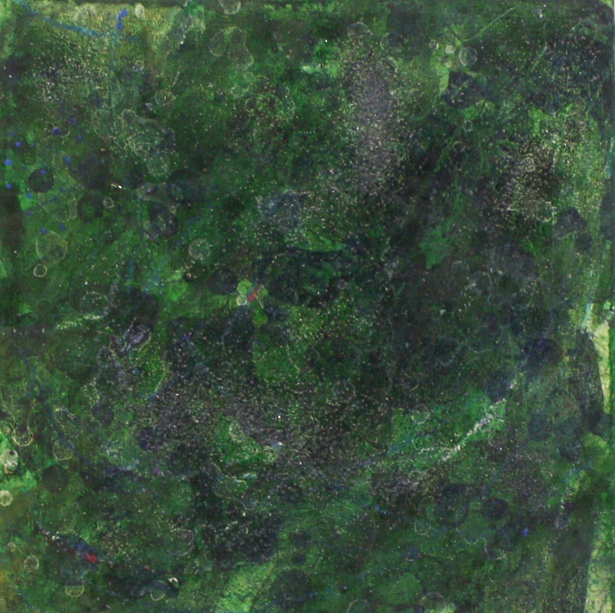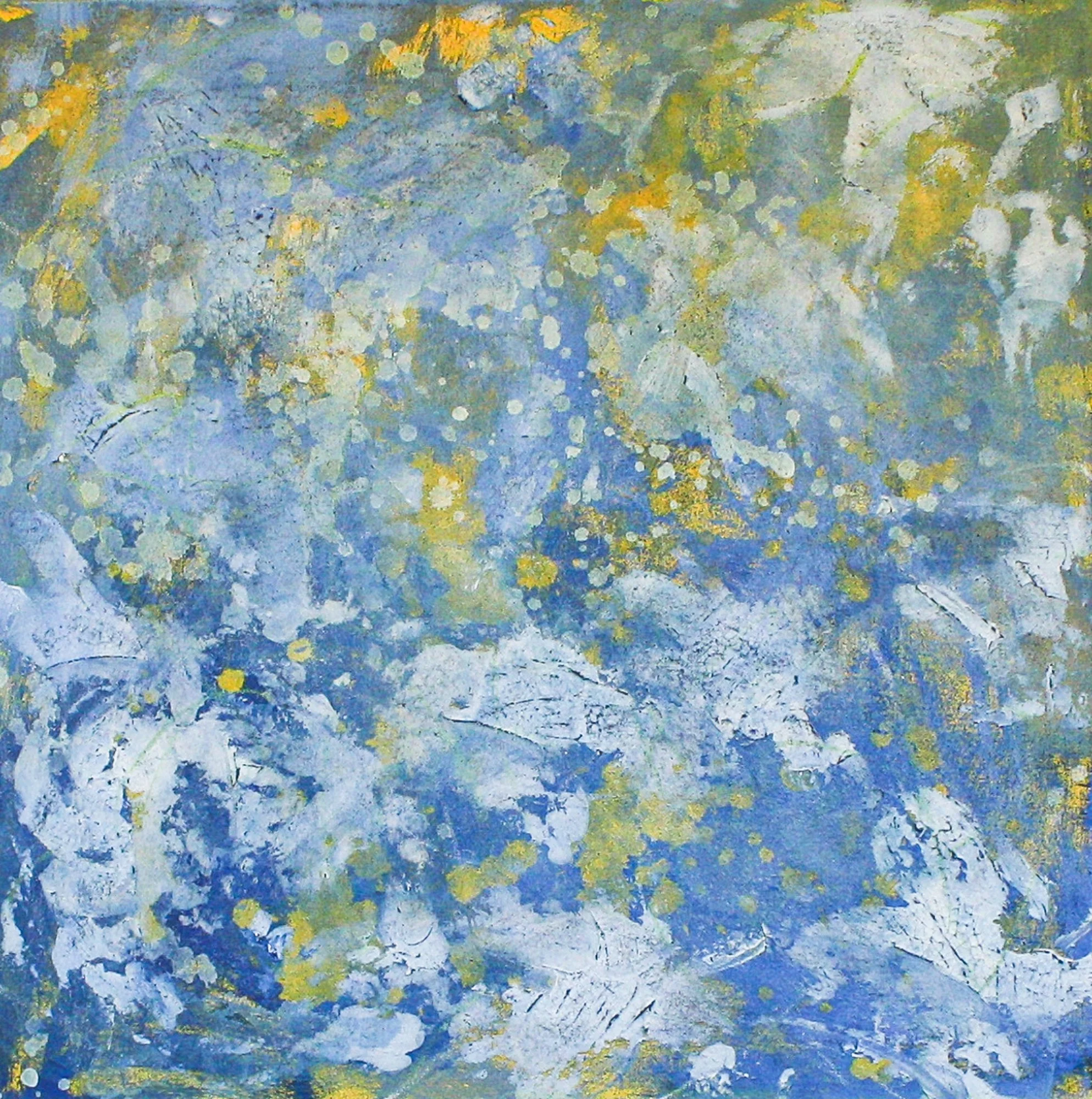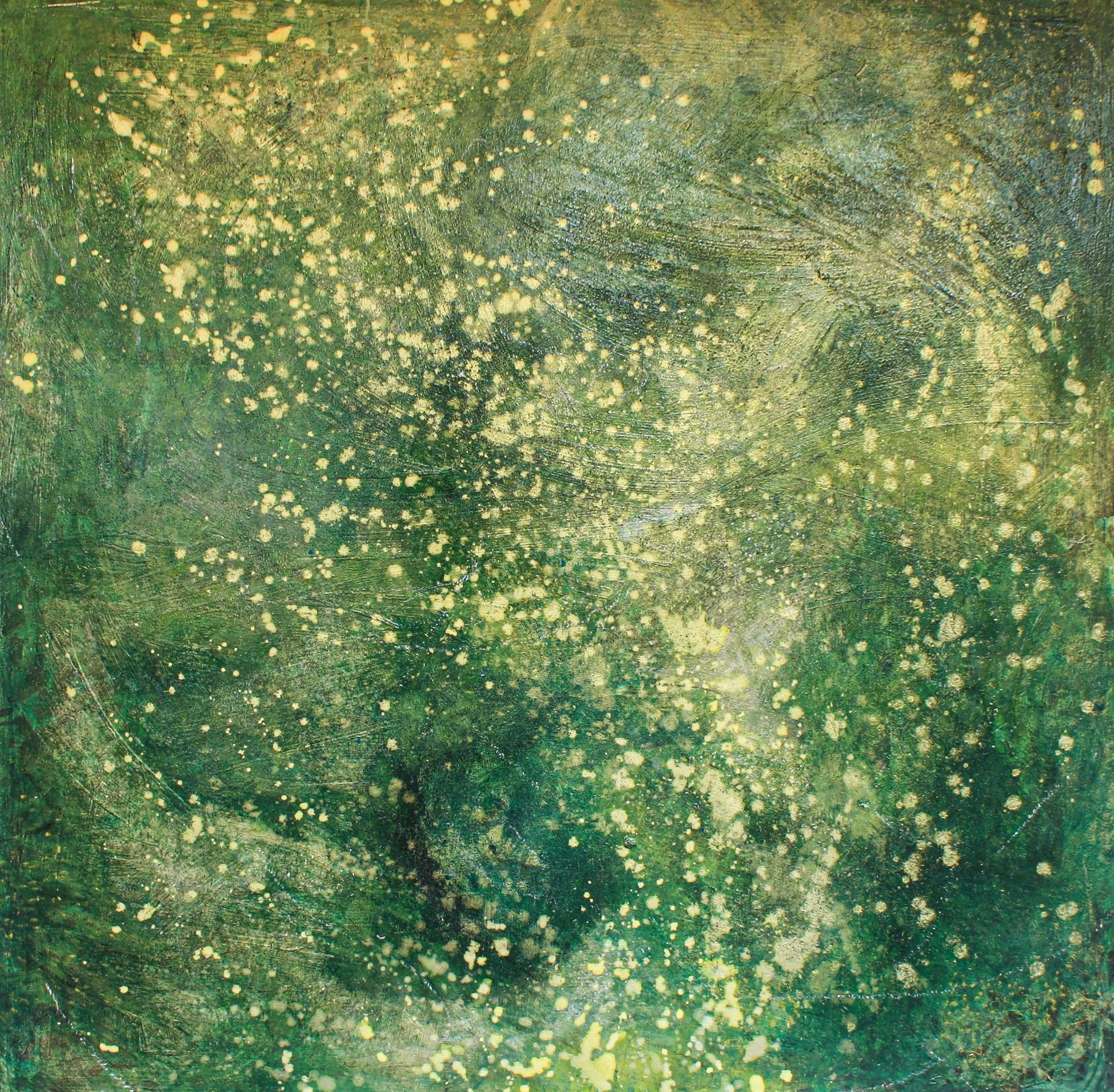 These mixed media paintings were created by layering pigment, crushed stone, and light-reactive materials such as glass and metallics, amid a crystalline finish. They are inspired by light and seek to engage actively with the changing luminosity of their environment; continuing to participate in the neverending call and response of these contrasting forces.