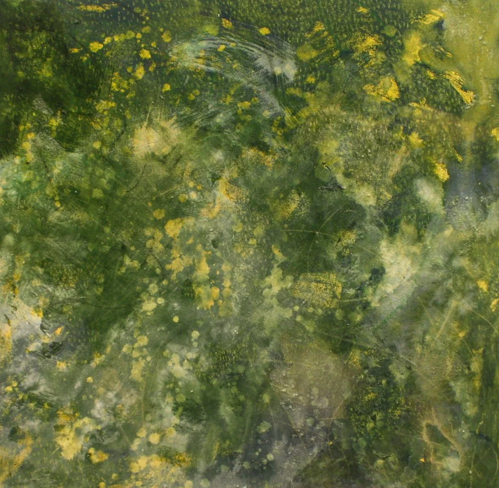 Utilizing reductive and additive practices to capture the visual poetry of light and shadow at play beneath the richness of a lush tree canopy, she dissolves all representational roots in her pieces, allowing them to convey the essence of the forest. Applying light-reactive glazes and materials such as crushed stone and glass, her pieces interact with the surrounding light as it changes throughout the day, mimicking the way light dances through the leaves.